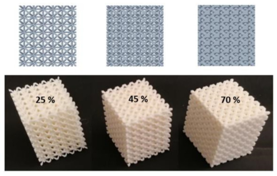 3D models and produced samples with the cell size a = 5 mm and all three volume ratios Vr = 25%, 45%, and 70%.