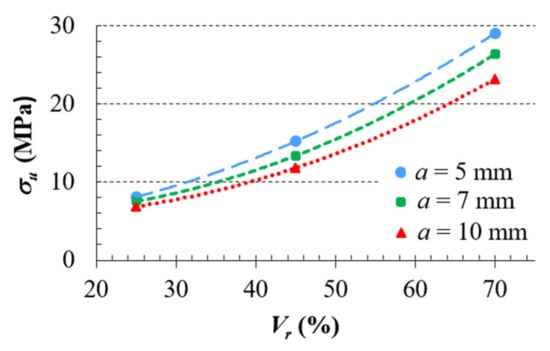 Dependencies of ultimate strength limit on volume ratio Vr.
