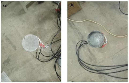 The static grading load method was adopted in the push-out test. The test device model is shown in Figure 2. The steel tube at the free end of the test specimen was compressed. The core concrete at the loading end was also compressed. A rigid pad with a diameter slightly smaller than the steel tube was placed at the bottom of the core concrete at the loading end. Slippage occurred, and the core concrete was pushed out. Strain gauges were affixed every 50 mm in the longitudinal height of the steel tube specimen to measure the strain value along with the height. Two dial gauges were symmetrically arranged on the surface of the pressure plate to measure the relative slip between the steel tube and the concrete. Figure 3 shows the actual test device system, and Figure 4 shows the specimen before loading and after loading.