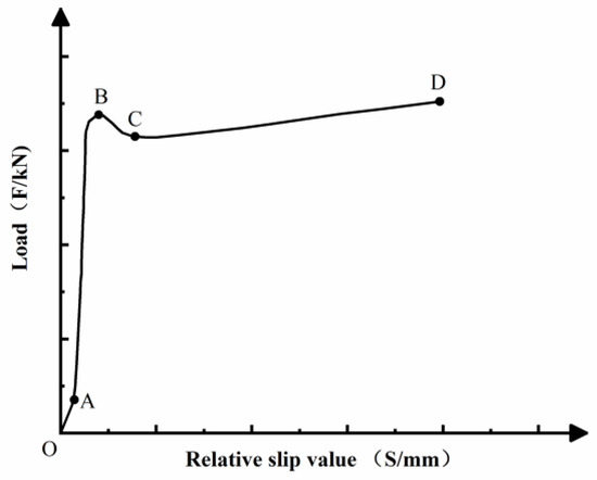 In the AB section, when the load continues increasing, a relatively large slip occurs between the core concrete and the steel tube. The local relative slip becomes more evident. At this time, the load on the specimen increases faster than the increase of relative slip. The interface bonding force is mainly caused by part of the chemical bonding force and mechanical biting force. When the chemical bonding force and mechanical biting force on the interface reach the maximum value, the load is near to the ultimate bonding load (FU). The load shows approximate linear distribution before the load is near to point B.