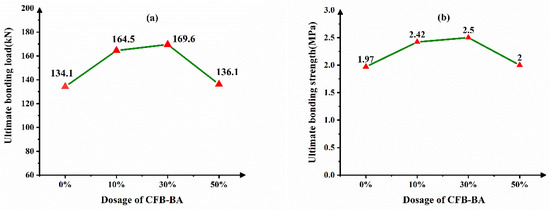 Dependence of CFB-BA dosage on the interface bonding behavior (a) ultimate bonding load (b) ultimate bonding strength.