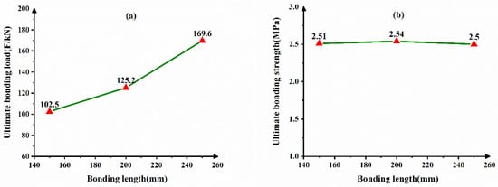 Dependence of bonding length on the interface bonding behavior (a) ultimate bonding load (b) ultimate bonding strength.