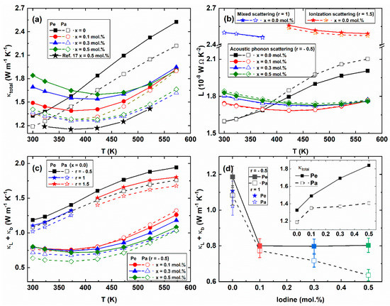 - Ji, H.S.; Kim, H.; Lee, C.; Rhyee, J.S.; Kim, M.H.; Kaviany, M.; Shim, J.H. Vacancy-Suppressed Lattice Conductivity of High-ZT In4Se3-x. Phys. Rev. B 2013, 87, 125111. [Google Scholar] [CrossRef]