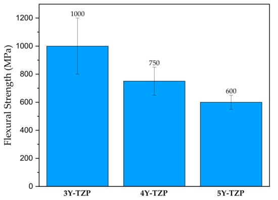 Flexural strength IPS e.max ZirCAD zirconium oxide ceramics varying in yttrium oxide content: 3%-3Y-TZP, 4%-4Y-TZP and 5%-5Y-TZP Adapted from ref. [64].