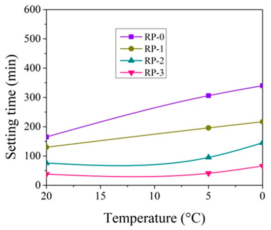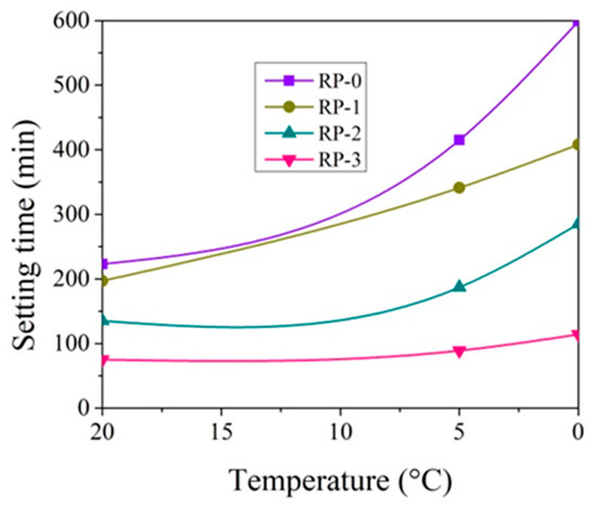 3.2. Setting Time of Cement Paste with CN at Different Temperatures