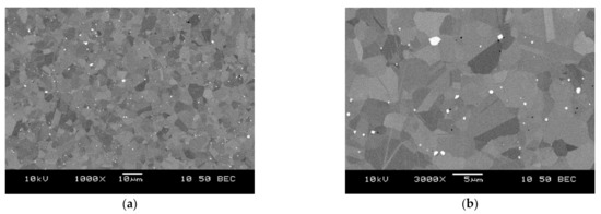 Moreover, an analysis of the chemical composition was performed along a line leading from the edge of the sample to its center. Changes in the concentration of individual elements resulting from passing through grains of different chemical composition were registered. No significant changes were observed in the content of elements related to the line penetration into the material. In order to determine the chemical composition of individual grains, as well as to determine the average chemical composition of this material, analyses were performed in micro-areas using the EDS (Energy Dispersive X-ray Spectroscopy, JEOL Ltd., Tokyo, Japan) method. The analysis of the chemical composition of the entire area visible at 2000× magnification is presented in Table 2.
