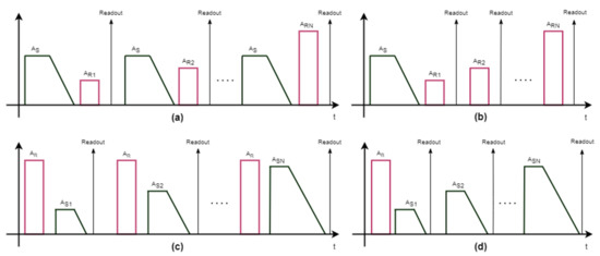 Cell reaction following the application of both a SET or a RESET pulse shows an uncertainty due to random amorphization and crystallization phenomena. The programming space is defined by the characteristic programming curve, which quantifies the change of the cell (normalized) conductance as a function of the programming pulse current. In the literature, two approaches have been proposed in order to program the cell resistance to an intermediate level: (a) partial-SET programming [27] and (b) partial-RESET programming [24,25]. In the first approach, the cell is first brought into the RESET state, and then a partial-SET programming pulse is applied so as to partially crystallize the active volume. In partial-RESET programming, the cell is first brought into the SET state, and then a partial-RESET pulse is applied in order to partially amorphize the active volume. On the basis of these two approaches, we experimented four different programming strategies and derived the corresponding programming curves. The adopted programming sequences are illustrated in Figure 9: (a) RESET single pulse programming (RSP); (b) RESET staircase programming (RSC); (c) SET single pulse programming (SSP); (d) SET staircase (SSC) programming.
