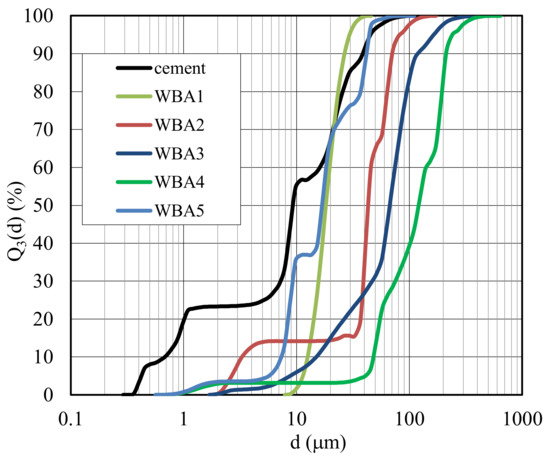 The main objective of this work was to evaluate the influence of WBA aging on the performance of cement composites, as a step towards defining an optimal strategy for WBA storage when used as a raw material in the concrete industry. The research focussed on five different types of WBA samples collected from power plants using grate combustion system (which are not water-cooled). WBAs collected from such plants show self-cementing properties over time [31,32,33,34] and therefore more knowledge about their use and storage is required.