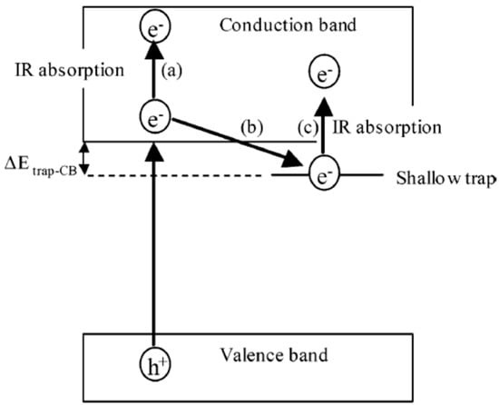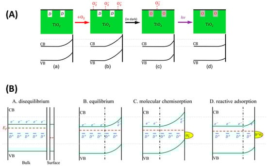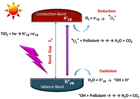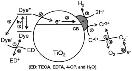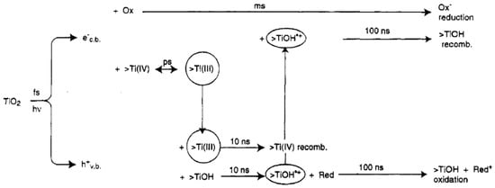 - ions in water are oxidized by photogenerated holes (see Equation (6)).