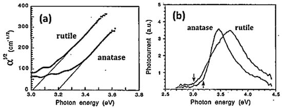 | Anatase | 3.2 (indirect) | Anatase: ~10 (Reference [75]) | Rutile, | 108 | 86 |