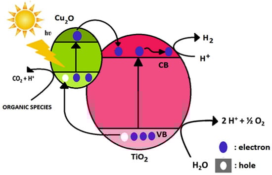 - Muscetta, M.; Andreozzi, R.; Clarizia, L.; Di Somma, I.; Marotta, R. Hydrogen Production through Photoreforming Processes over Cu2O/TiO2 Composite Materials: A Mini-Review. Int. J. Hydrog. Energy 2020, 45, 28531–28552. [Google Scholar] [CrossRef]