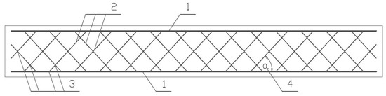 Schema of the truss-shaped reinforcement system of a beam: 1—longitudinal bars (chords), 2—diagonal transverse bars (cross braces), 3—joints of bonding (welding or resistance welding), 4—cross braces inclination angle 30°–60°.