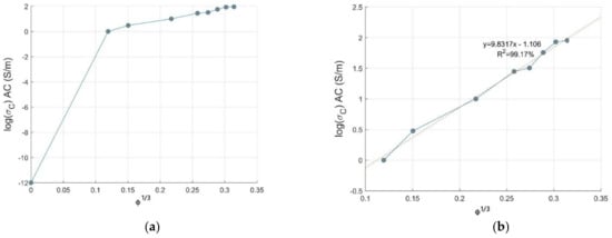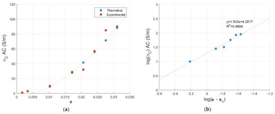 where and are fitting constants, is the volume fraction of reinforcement and is the percolation threshold [22]. The equation can be written by taking the logarithm of both sides: