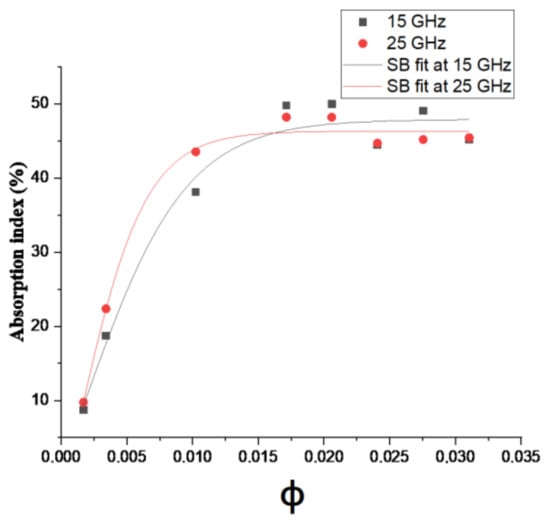 Hereafter, we will investigate the use of SB to model the electromagnetic absorption index and predict the percolation threshold. SB equation can be written as:
