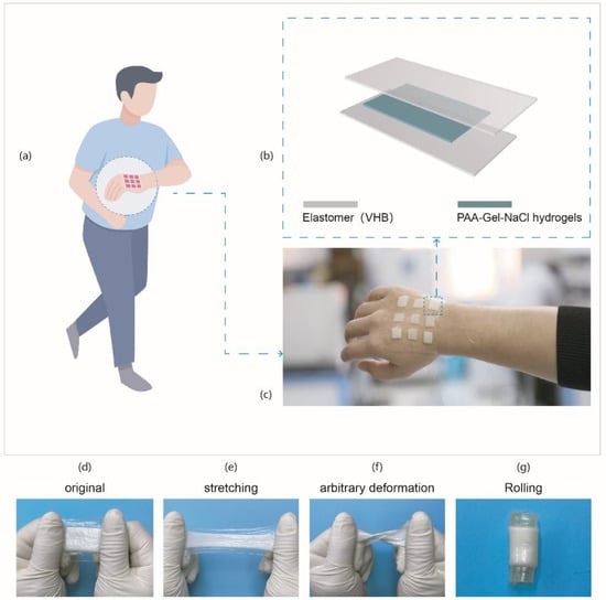 - Wang, C.; Hu, K.; Zhao, C.; Zou, Y.; Liu, Y.; Qu, X.; Jiang, D.; Li, Z.; Zhang, M.R.; Li, Z. Customization of Conductive Elastomer Based on PVA/PEI for Stretchable Sensors. Small 2020, 16, e1904758. [Google Scholar] [CrossRef] [PubMed]