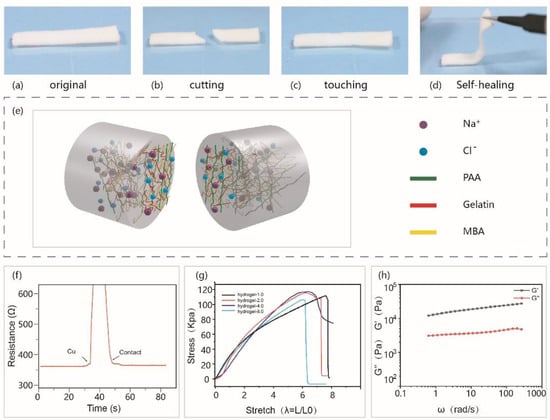- Jing, X.; Mi, H.Y.; Lin, Y.J.; Enriquez, E.; Peng, X.F.; Turng, L.S. Highly Stretchable and Biocompatible Strain Sensors Based on Mussel-Inspired Super-Adhesive Self-Healing Hydrogels for Human Motion Monitoring. ACS Appl. Mater. Interfaces 2018, 10, 20897–20909. [Google Scholar] [CrossRef] [PubMed]