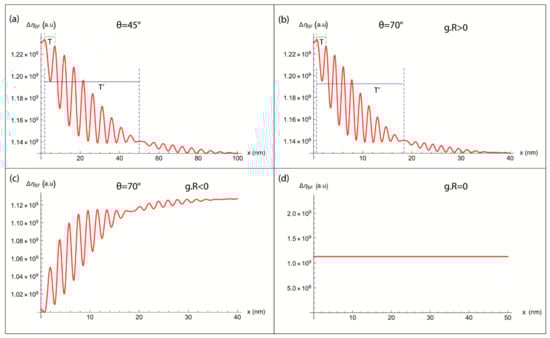 - For a thickness t= 0.12ξg (6 nm), the slight Δη’ variations are between −0.58 (a.u.) and 0.58 (a.u.) as it is shown in Figure 3a. Such variations are due to the slight contribution of the term T(ω).