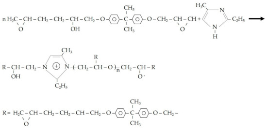 Chemical reaction process between E-51 epoxy resin and 2-ethyl-4-methylimidazole.