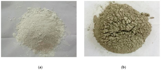 UFA is made by Henan Zhengzhou Huifeng New Material Co., Ltd. (Zhengzhou, China), particle size: 5.95 μm. As shown in Figure 2b and Figure 3b, it is a yellowish-brown powder with round shape, and greater average particle size than MK from a micro perspective.