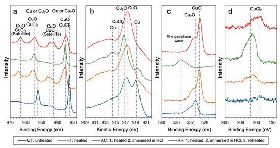 | Cu LMM | 915.4 | CuCl2 | [21,22,23] |