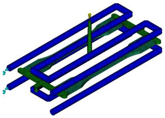 The thick plate part was designed as depicted in Figure 1. The meshes, feed system and cooling system are shown in Figure 2. The thick plate part chosen for this study has a length of 150 mm, the width of 20 mm and thickness of 4 mm moulded using LDPE material. A 3D solid mesh in a tetrahedral form with four nodes covers the whole part and gating system, as shown in Figure 1. The meshed part and gating system consist of 345,914 tetrahedral elements, connected by 64,123 nodes. The ratio for the volume feed system to the volume of the part is 0.56, which is volumetrically adequate. Meanwhile, as shown in Figure 2, a cooling system was developed with a 6 mm diameter of the beam elements, as suggested by AMI software (Autodesk Moldflow Insight 2012, Moldflow, Melbourne, Australia). Eighty-eight beam elements were used to form the cooling system with a total of 90 nodes.