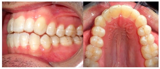 - Shalish, M.; Cooper-Kazaz, R.; Ivgi, I.; Canetti, L.; Tsur, B.; Bachar, E.; Chaushu, S. Adult patients’ adjustability to orthodontic appliances. Part I: a comparison between Labial, Lingual, and Invisalign. Eur. J. Orthod. 2012, 34, 724–730. [Google Scholar] [CrossRef]