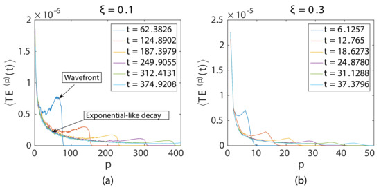 Two types of impulse initial conditions are used. In one of the systems, the first particle () was imparted with initial velocity . In the other system, the center particle was imparted with . Equations (37) and (38) were used for diffusion analyses associated with the impulse propagating in the granular chain.