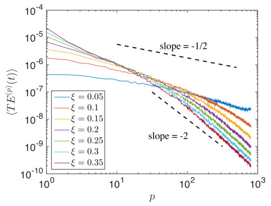 where B is the total number of bins assigned in the wavenumber space. The binned spectral energy is normalized by the total energy as a probability density:
