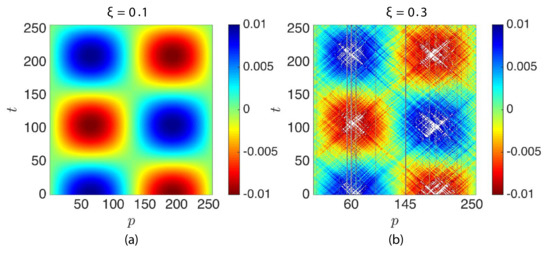 The elements of matrix can be computed numerically using the boundary condition in Section 2.6; a standing wave mode belonging to a particular wavenumber band s can be agitated in the form of a sinus (or cosinus) initial condition; see Equation (28).