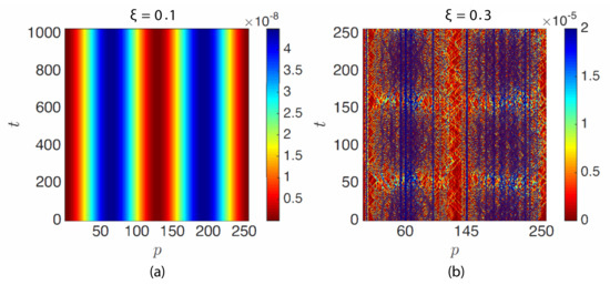 We can see that is independent of time, which means the energy of the chain is conserved. If the summation term is dropped, Equation (41) gives the energy of the eigenmodes of the chain; thus, .