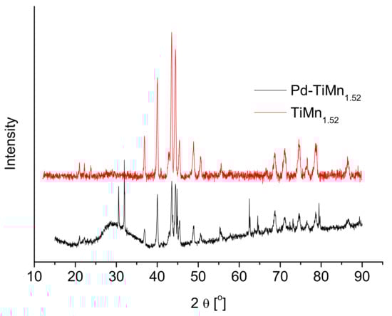 X-ray diffractograms of TiMn1.52 and Pd–TiMn1.52.