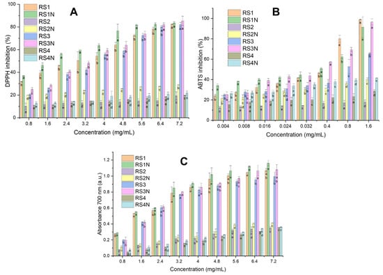 2.5.2. ABTS•+ Radical Cation Scavenging Assay