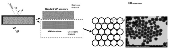 Comparison of the structure of a vacuum insulation panel (VIP) and nano-insulation material (NIM). Source: modified from [,,].