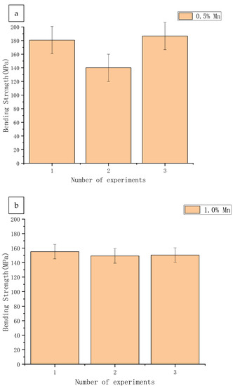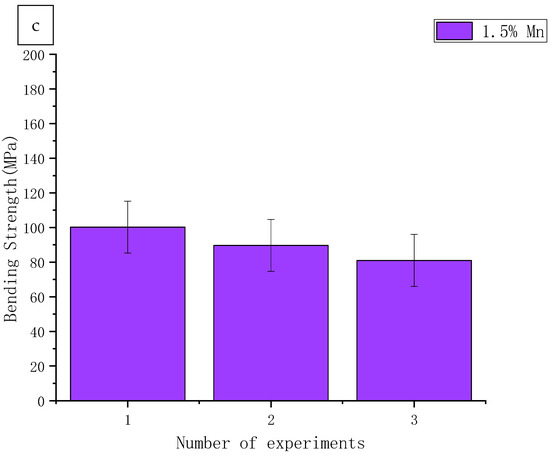 Maximum bending strength of the specimen. (a) 0.5% Mn; (b) 1.0% Mn; (c) 1.5% Mn.