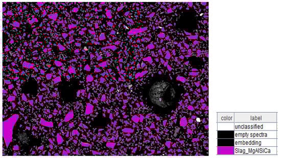 Figure 9 shows the large-area PARC phase map of the raw GBFS and its corresponding phase legend, where the GBFS particles are coded as purple.