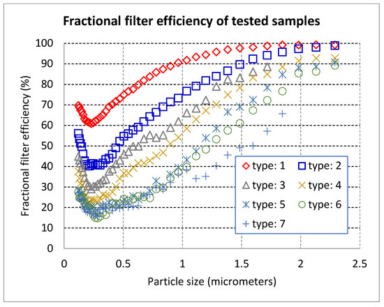 Fractional filter efficiency of samples.