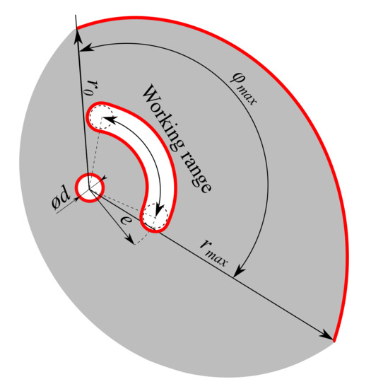 The angle of the beam below the limit value causes the cam to slip. In the optimal case, the angle should be constant because a constant value represents uniform loading of the cam in any position. By integrating the Equation (3) and its modification, we obtain the equation of the logarithmic spiral
