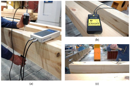 - Riggio, M.; Anthony, R.; Augelli, F.; Kasal, B.; Lechner, T.; Muller, W.; Tannert, T. In situ assessment of structural timber using non-destructive techniques. Mater. Struct. 2014, 47, 749–766. [Google Scholar] [CrossRef]