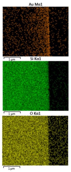 Elemental mapping images from the cross-sectioned gold-coated substrate.