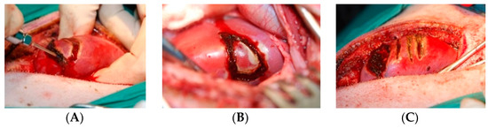 The animals were fasted and clinically healthy on the day of surgery. They were sedated by intramuscular administration of a mixture of medetomidine and butorphanol (0.1 mg/kg body weight, Domitor®, Orion Pharma, Warsaw, Poland; 0.2 mg/kg body weight, Butomidor®, Richter Pharma AG, Wels, Austria). They were placed on the operating table in supine position. Intravenous access was obtained by inserting an intravenous catheter into the marginal vein of the ear and general anesthesia was induced by bolus administration of propofol (4 mg/kg, Scanofol®, Scan Vet Sp. z o. o., Skiereszewo, Poland). The animals were intubated and anesthesia was maintained with an isoflurane/oxygen mixture. Analgesia was provided by continuous intravenous infusion of fentanyl (500 μg/h, Polfa SA, Łódź, Poland). After the procedure and for the next 3 days, the animals were administered amoxicillin (15 mg/kg body weight, Betamox LA®, ScanVet Sp. z o. o., Skiereszewo, Poland) and metamizol (30 mg/kg body weight, Biovetalgin®, Biowet Drwalew, Drwalew, Poland).