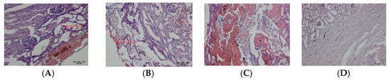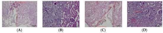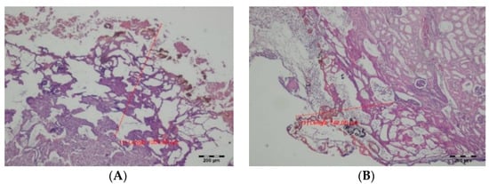 Kidney fragments were prepared as described previously [26,27]. Briefly, excised fragments and portions of the organ at the site of excision were fixed in 10% buffered formaldehyde solution and then cut into small blocks transversely to the cutting line and embedded in paraffin. Approximately 4 μm-thick sections (Leica 2025 rotational microtome, Leica Microsystems, Wetzlar, Germany) were prepared and stained with hematoxylin and eosin (H&E; Sigma-Aldrich, Saint Louis, MO, USA). The microscopic appearance of the kidney was evaluated using a light microscope (Olympus BX43, Olympus Corporation, Tokyo, Japan) and acquisition imaging software (Version 1.6; 2010 Olympus Corporation, Tokyo, Japan).