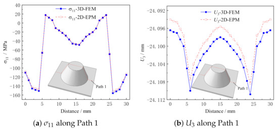 | Displacements of 3D-FEM and 2D-EPM, respectively | |