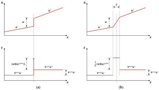 (a) Strong and (b) regularized discontinuities in an elasto-plastic solid.