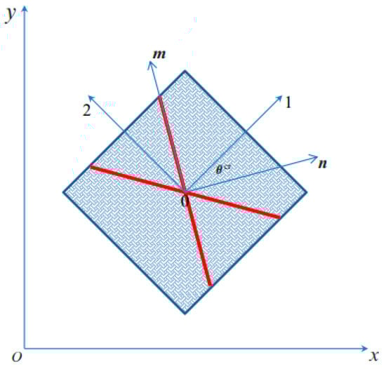The strain localization Equation (16) requires the flow tensor in Equation (31) to be written in this system. Let be the angle between the material system (1, 2, 3) and the () system. Then