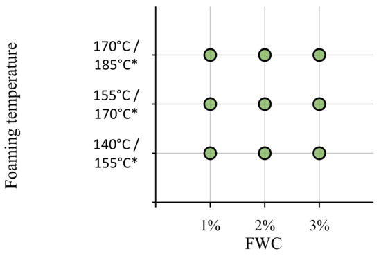The foaming conditions (air and water pressure) were in accordance with [41,42]. All test samples were prepared according to EN 12594:2014-12.