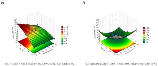 Response surfaces obtained through the measurements of ERm and T1/2 foaming characteristics of: (a,b) 50/70, (c,d) 45/80-55 and (e,f) 45/80-80 binders.