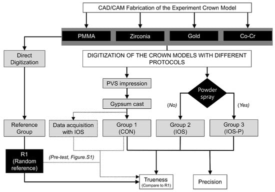 - Sim, J.Y.; Jang, Y.; Kim, W.C.; Kim, H.Y.; Lee, D.H.; Kim, J.H. Comparing the accuracy (trueness and precision) of models of fixed dental prostheses fabricated by digital and conventional workflows. J. Prosthodont. Res. 2019, 63, 25–30. [Google Scholar] [CrossRef] [PubMed]