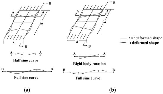 Comparison of buckling mode shapes between (a) fixed support condition, and (b) hinge support condition.