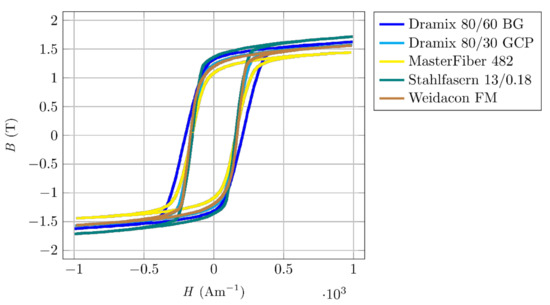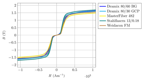 The materials of fibres for application in composites are mainly chosen so that the mechanical properties of the resulting composite material are maximized. Fibres influence the tensile strength and also the ductility of the resulting specimen. According to fibre datasheets, they are made of hard, many times rolled steel to increase strength. Manufacturers guarantee dimensions, strength, flexibility, and corrosion resistance, but magnetic properties are not guaranteed nor specified in any way. Based on the chemical composition given in the datasheets, fibres are probably made from magnetically soft materials with a relatively wide hysteresis loop, similar to structural or high-strength steels. To use a fibre’s magnetic properties for its orientation or identification, it is necessary to obtain an overview of these properties.