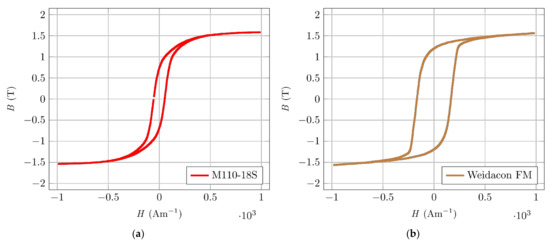 Magnetic hysteresis. (a) Oriented silicon steel M110-18S, C22. (b) Fibre Weidacon FM.